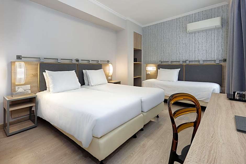 Air-conditioned room with a satellite LCD TV, mini-bar and private bathroom with telephone and hairdryer. Please note that joined twin beds or double beds can be provided on request and upon availability. Please note that front balconies from the 5th floor and up are available upon request and availability.